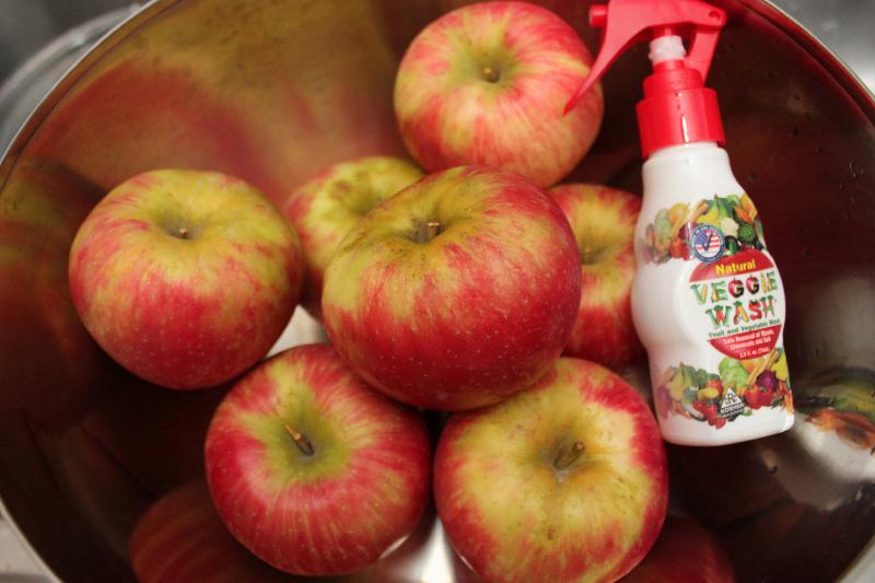 I got to use this cute sample of Veggie Wash! My apples were organic, so I didn’t have to worry about pesticide residues, but all produce has bits of dirt and wax and stuff. Veggie Wash uses citrus-based ingredients to get all of that stuff off.