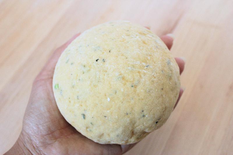 - Break off a small chunk of dough; cover the rest with a towel to prevent drying. Stretch or flatten the lump a bit with your hands and flour lightly.