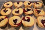 - Fill muffin cups to the top with berries. Brush the rim of each cup with egg wash and add a top crust, doing your best to seal the top and bottom crusts together with fingers or the back of a spoon. If you didn’t cut shapes into the top crusts, use a sharp knife to cut a few slits in each one.