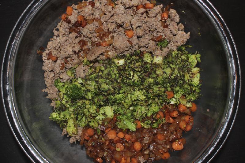 One thing to keep in mind is that the vegetables should be cooked, and cooked pretty soft. This will give a nice consistency with no odd crunches (unless you like that), and more importantly, prevent the veggies from creating watery spots. Frozen veggies also work; just be sure to thaw and drain well.
