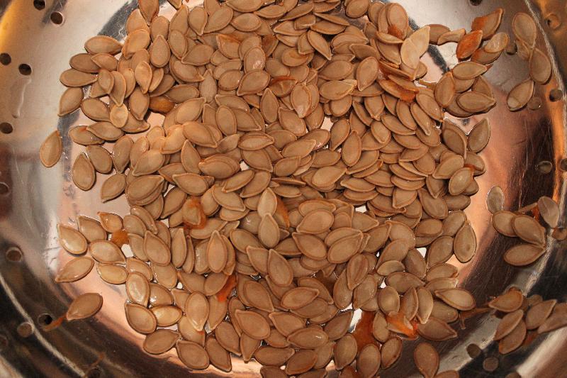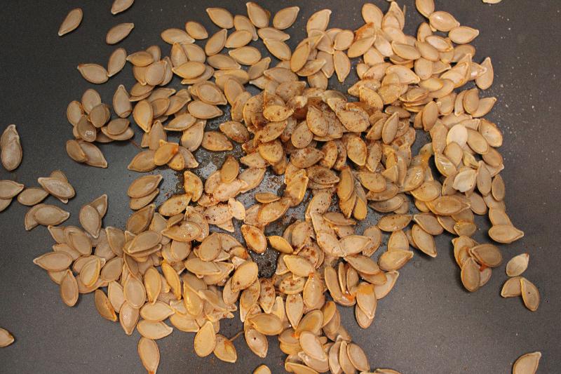 The main challenge for me was cleaning the squash seeds. I used a spoon and some elbow grease to make sure I completely scraped them out of the squash (I used the butternut from the curried soup recipe). Then I popped them in a colander and tried to rinse off the pulp, but I did have to use my fingers to pick off the more stubborn bits.