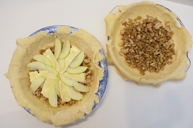 This is one of those rare recipes that worked perfectly the first time. It’s so rare that I only took a few overhead shots, and had to cook it again for photos (darn, more pie). Apple and brie and poultry classically go well; enough so that I’ve already used them here in an Apple Brie Panini.