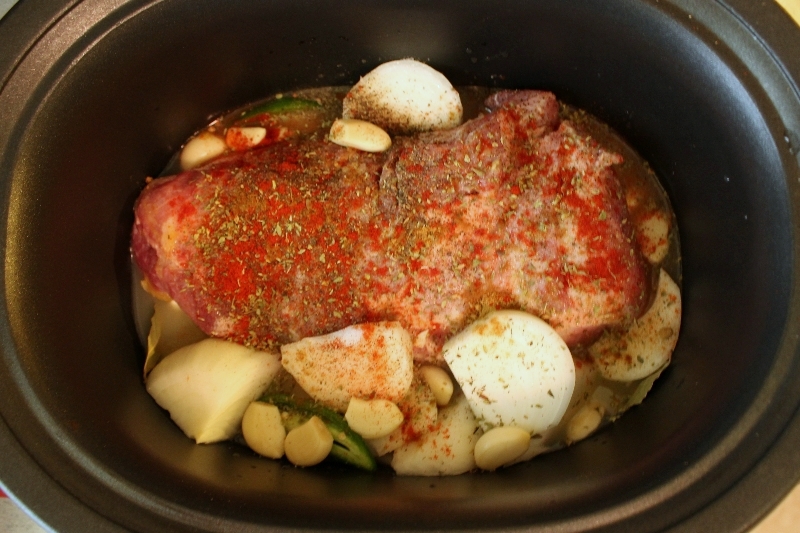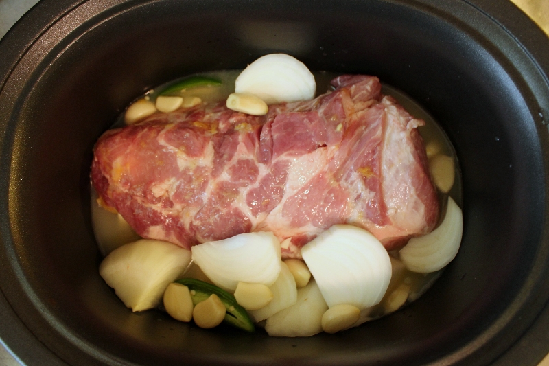- Place all of the pork ingredients in the slow cooker. Cook on low for 8-10 hours.