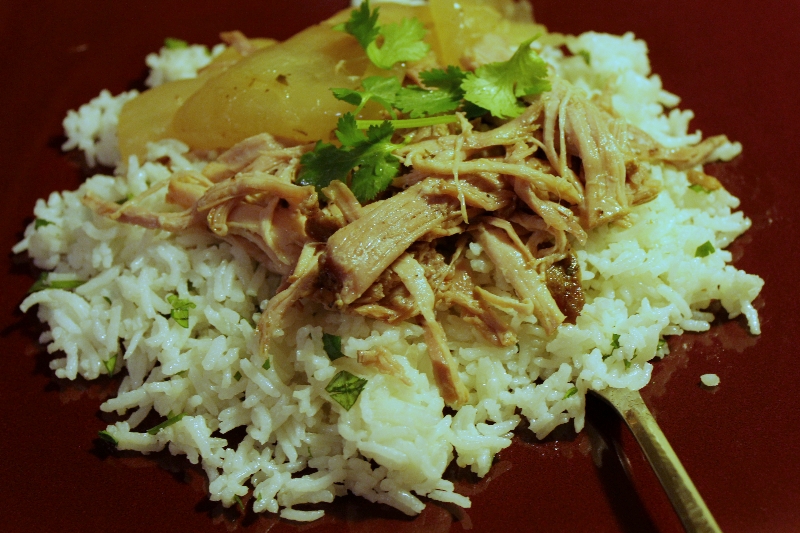 I went looking for a mojo pork recipe because Robby and I ate recently at a new local place called Caribe Blu. It’s a small family-friendly place that does FABULOUS Latin food, leaning towards Cuban but with Puerto Rican and other island influences. They serve a mojo dipping sauce, which is basically cilantro and garlic, held together with oil. As soon as I got home, I googled “mojo.” I came up with this different-but-no-less-delicious slow cooker recipe.