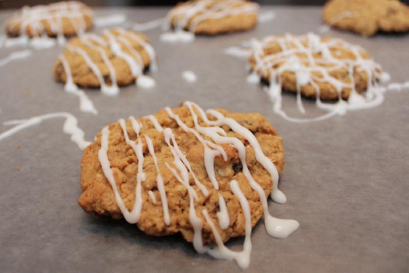 8. Whisk all icing ingredients together. Use a piping bag or zipper storage bag with a corner cut off to drizzle over the cookies.